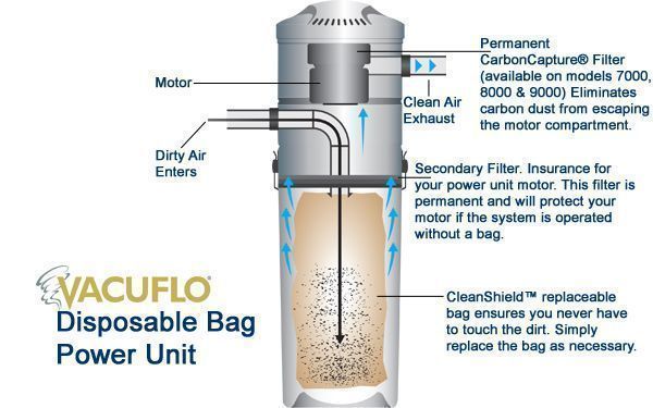 Vacuflo DB power units have taken vacuum cleaning to a while new level of clean and features durable 3 layer filter bags that do not let any dust escape. Its CleanShield filter bag gets rid of .99% of the allergens & dust particles as small as .3 microns. The DB7000 Power Unit also features a secondary filter that ensures ultimate motor protection. This permanent filter will protect your motor if the system is operated without a bag. The